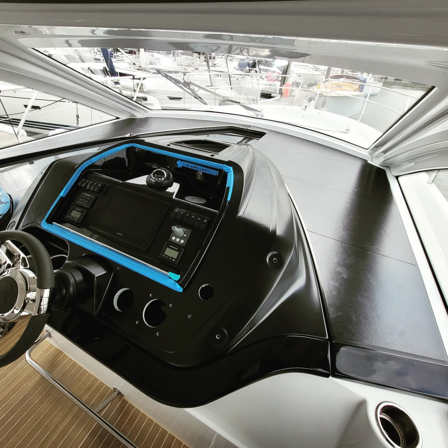 Motor yacht interior dash console wrap